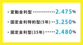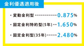 ※1.フラット35Sや変動金利型と固定金利型とを組み合せる場合など、商品により一定の金利優遇が適応されるものもあります。