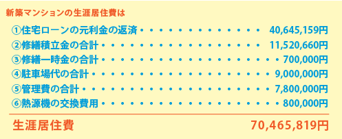 そこで新築マンション・新築戸建て・中古戸建の各々の生涯居住費(生涯居住費)を比較してみました。