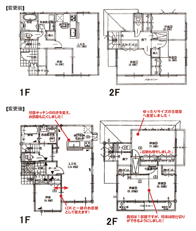 上側の図はフリープランの業者の標準企画のもので、下側が購入者の希望を取り入れたものです。