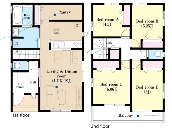 | 設備 | 公営水道、公共下水、防犯カメラ、フラット35・S適合証明書、駐車場2台以上、閑静な住宅地、平坦地、地盤調査済、スーパーが近い(10分以内)、駅まで平坦、2沿線以上利用可、小学校徒歩10分以内、中学校徒歩10分以内、保育施設・幼稚園5分以内、公園5分以内、コンビニ5分以内、システムキッチン、ガス3口、浄水器、I型キッチン、ユニットバス、追い焚き、浴室乾燥機、ウォシュレット、トイレ2ヶ所、浴室に窓、暖房便座、浴室暖房、バルコニー、南面バルコニー、2階建、LDK15畳以上、人感照明センサー、南向き、クローゼット、収納、下駄箱、全居室収納、シャンプドレッサー付き、南庭、フラット35Sに対応、年内入居可、モニタ付きインターフォン、複層ガラス、火災警報器(報知機)、全居室複層ガラスか複層サッシ、通風良好、陽当り良好、24時間換気システム、建物10年保証 |
