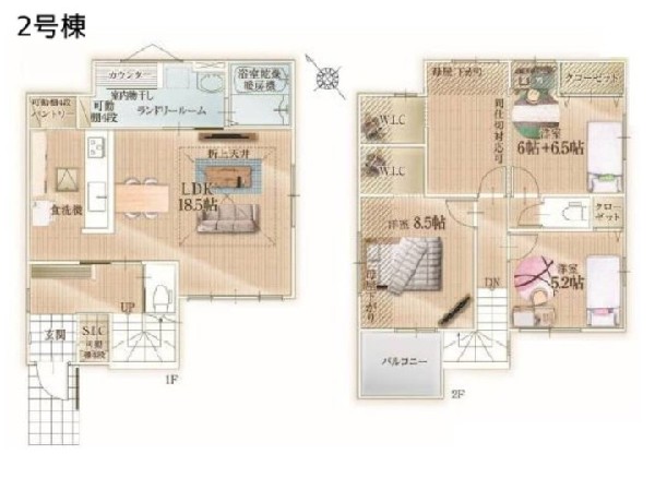 | 設備 | 公営水道、公共下水、防犯シャッター、省エネルギー対策、駐車場2台以上、閑静な住宅地、角地、都市近郊、地盤調査済、南側道路面す、前道6m以上、市街地が近い、海まで2km以内、隣家との間隔が大きい、周辺交通量少なめ、スーパーが近い(10分以内)、駅まで平坦、小学校徒歩10分以内、保育施設・幼稚園5分以内、公園5分以内、システムキッチン、ガス3口、食器洗い機付き、浄水器、I型キッチン、ユニットバス、追い焚き、浴室乾燥機、ウォシュレット、トイレ2ヶ所、浴室1坪以上、暖房便座、浴室暖房、バルコニー、南面バルコニー、2階建、LDK18畳以上、採光2面、南面3室、全室2面採光、クローゼット、収納、下駄箱、全居室収納、洗面室収納、シャンプドレッサー付き、年内入居可、モニタ付きインターフォン、複層ガラス、火災警報器(報知機)、通風良好、陽当り良好、24時間換気システム、建物10年保証 |