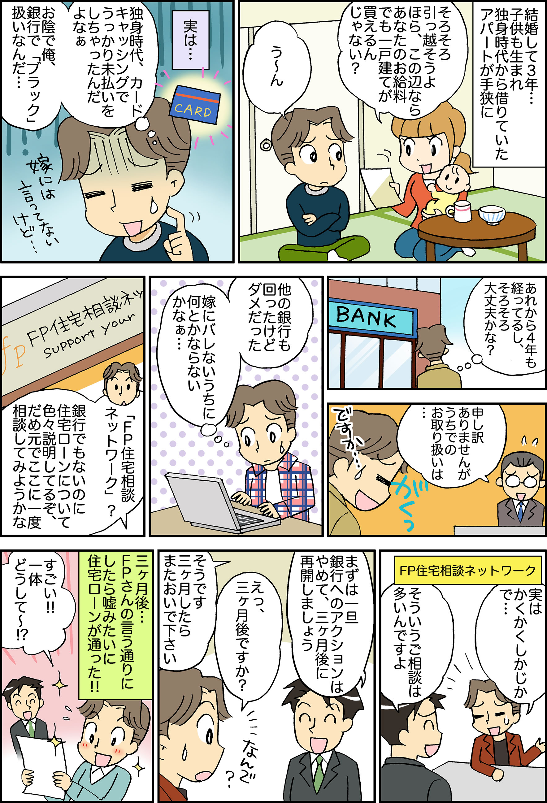 もちろん、マイホームを購入することは私も賛成なのですが、実は私は独身時代にカードキャッシングで未払いをしており、いわゆる『ブラック』なのです。もちろん妻はこの事実を知りません。未払いから4年、ひょっとしたら住宅ローンが組めるのではないか?と思い、銀行に行き、こっそり住宅ローンの審査をやってみました。ですが、結果はやはり『取扱不可』。全部で4つの金融機関で試してみましたが、結果は同じでした。