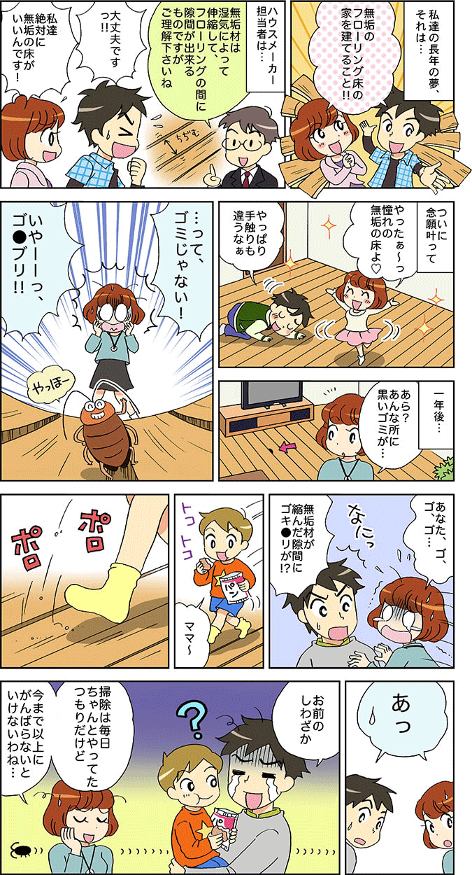 フローリングに隙間が空いて以来、ゴミが隙間にたまることが多く、やれやれと思いながらそのゴミを掻き出そうとしたその時、