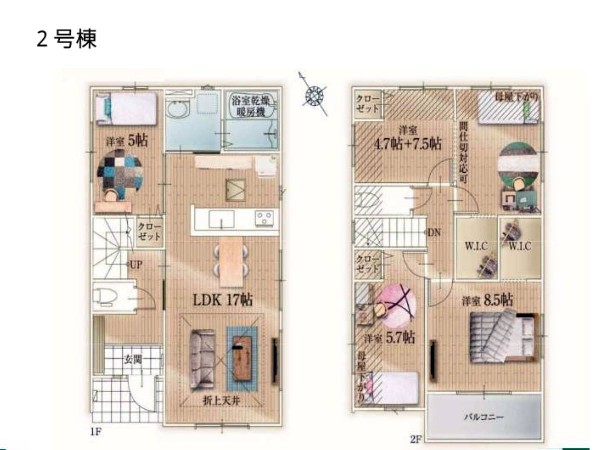 習志野市香澄3丁目 新築一戸建 5498万円 2号棟