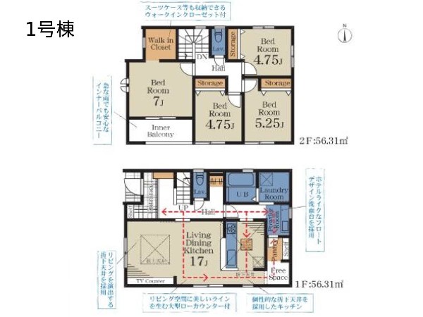 船橋市栄町1丁目 新築一戸建 3988万円 1号棟